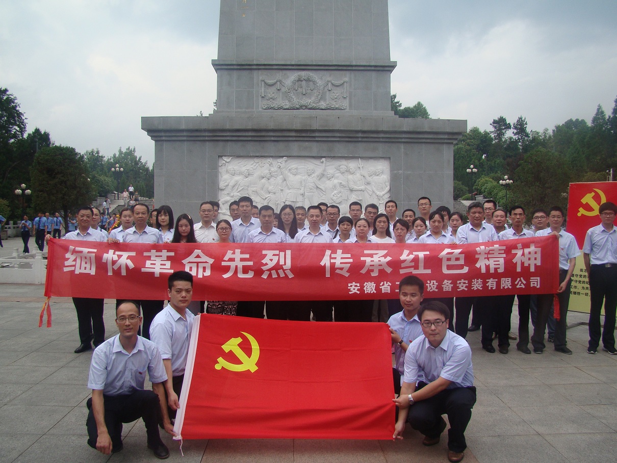 為隆重紀(jì)念中國共產(chǎn)黨成立96周年,喜迎黨的十九大,進(jìn)一步推進(jìn)“兩學(xué)一做”學(xué)習(xí)教育常態(tài)化制度化,深入開展“講政治、重規(guī)矩、作表率”專題教育,激勵(lì)廣大黨員堅(jiān)定理想信念,繼承和發(fā)揚(yáng)黨的光榮傳統(tǒng)和優(yōu)良作風(fēng)。7月7日,安徽安裝公司組織機(jī)關(guān)全體黨員赴金寨縣烈士紀(jì)念館開展“緬懷革命先烈,傳承紅色精神”黨員主題活動(dòng)日。公司黨委書記胡六中,紀(jì)委書記李寬旭、副總經(jīng)理李原以及機(jī)關(guān)黨員同志共50余人參加了活動(dòng)。