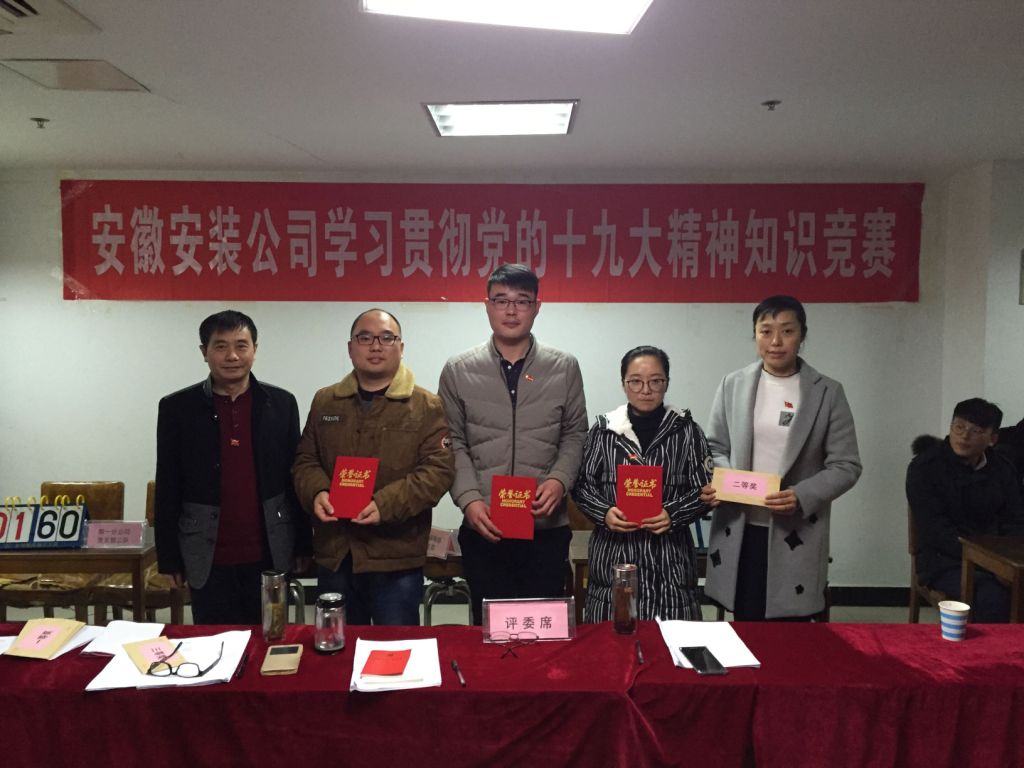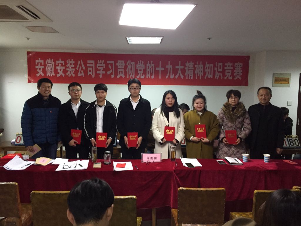 12月6日下午,安徽安裝公司學(xué)習(xí)貫徹黨的十九大精神知識(shí)競賽成功舉辦。來自公司機(jī)關(guān)及所屬各分公司黨支部8支代表隊(duì)24名選手參加比賽。