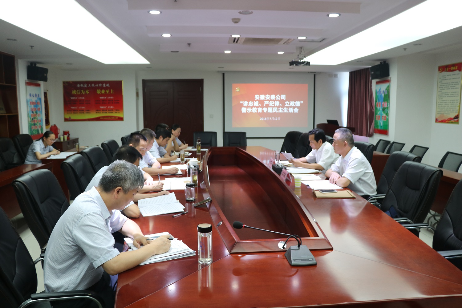 根據集團公司黨委關于“講忠誠、嚴紀律、立政德”專題警示教育統(tǒng)一部署,按照《安徽安裝公司關于以魯煒案徽商集團窩案等案件為反面教材開展“講忠誠、嚴紀律、立政德”專題警示教育的安排意見》要求,7月12日下午,安徽安裝公司黨委召開“講忠誠、嚴紀律、立政德”警示教育專題民主生活會。集團公司黨委副書記牛曙東,紀委副書記、紀檢監(jiān)察室主任龔志酬到會指導。會議由公司黨委書記、副總經理胡六中主持,公司領導班子成員參加會議。