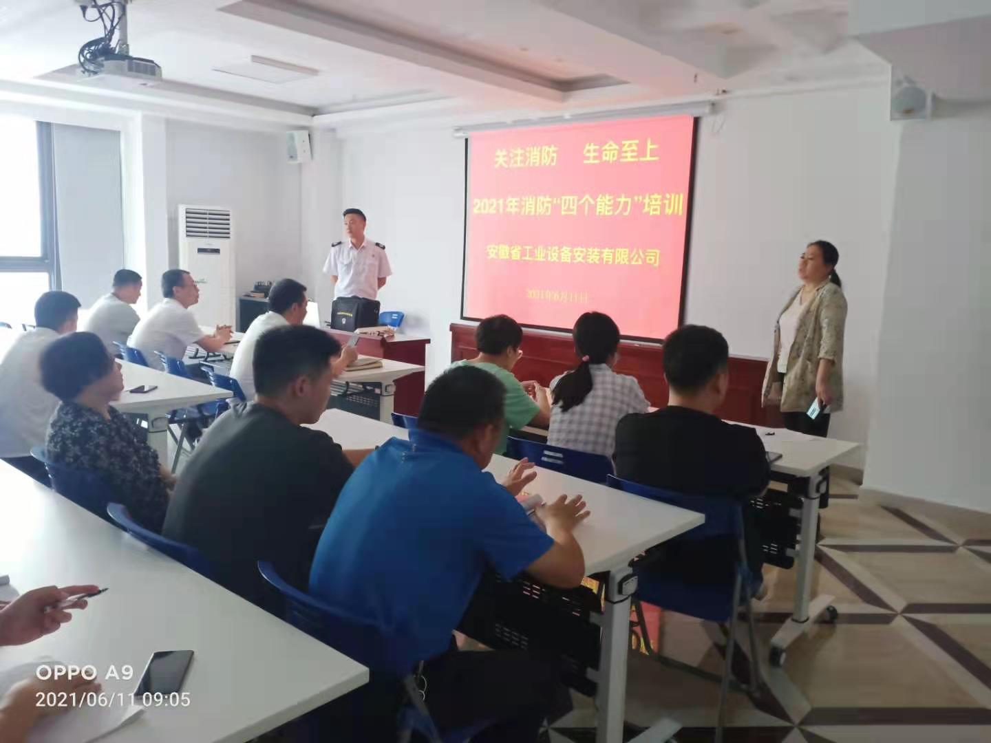 為進(jìn)一步加強(qiáng)公司機(jī)關(guān)全體員工消防安全意識,提高員工自我防范和自救互救能力,6月11日上午,安徽安裝公司以“安全生產(chǎn)月”活動為契機(jī),特邀消防培訓(xùn)中心教官為公司職工進(jìn)行了一場生命至上消防“四個能力”安全知識技能培訓(xùn)。公司副總經(jīng)理李原應(yīng)邀出席本次培訓(xùn),機(jī)關(guān)各部門40余名職工參加了培訓(xùn)。