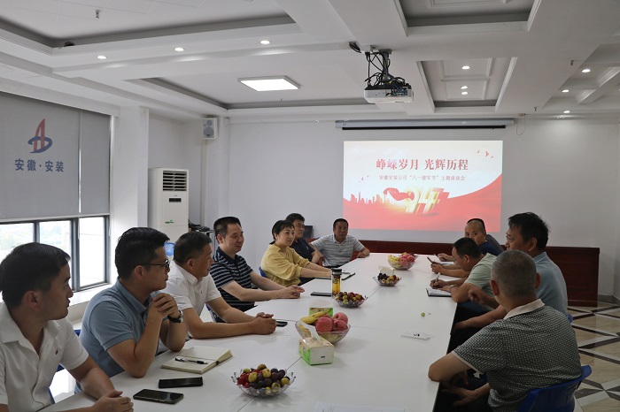 2021年8月1日是中國(guó)人民解放軍建軍94周年,8月2日,安徽安裝公司組織召開(kāi)了“八一”建軍節(jié)主題座談會(huì)。座談會(huì)由公司工會(huì)副主席、人力資源部經(jīng)理王敏主持,黨委書(shū)記、董事長(zhǎng)胡六中出席,10名公司在職的退伍軍人參加了座談會(huì)。