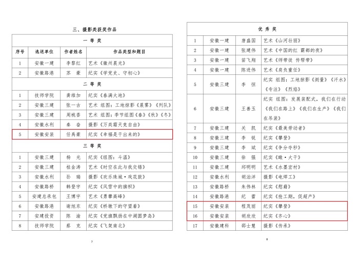 9月29日,集團公司工會通報了“翰墨寫初心 丹青頌黨恩”職工書畫攝影作品展評選結(jié)果,安徽安裝公司選送的五幅作品榜上有名。其中馬金鑫的油畫作品《支部建在項目上》榮獲繪畫類一等獎,任禹豪的攝影作品《幸福是干出來的》榮獲攝影類二等獎,化范寶的硬筆書法作品《沁園春·雪》和程茂麗的攝影作品《攀登》、胡欣欣的攝影作品《齊心》分別榮獲書法類優(yōu)秀獎和攝影類優(yōu)秀獎。
