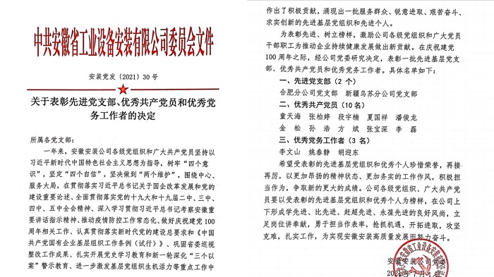 今年以來,趙永峰同志以黨史學習教育和慶祝中國共產(chǎn)黨成立100周年為契機,以集團黨建“領航計劃”為抓手,創(chuàng)新型開展支部黨建工作,多措并舉,勠力同心,真抓實干,積極探索項目黨建工作新載體、新途徑,以深入開展創(chuàng)先爭優(yōu)“黨員示范崗”等主題實踐活動為載體,以“我為群眾辦實事”實踐活動帶領支部班子成員創(chuàng)造性地開展一系列黨建工作,用實際行動踐行初心使命,用真抓實干檢驗黨史學習教育成效。積極發(fā)揮了“一名黨員就是一面旗幟,一個支部就是一座堡壘”的重要作用。他所在合肥分公司被建工集團授予“先進集體”光榮稱號,合肥分公司黨支部被安徽省工業(yè)設備安裝有限公司黨委評為“先進黨支部”。趙永峰同志榮獲安徽建工集團“勞動模范”等多項榮譽稱號。