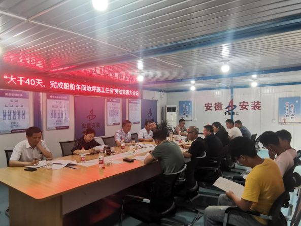 9月2日上午,安徽安裝蚌埠臨港智能制造產業(yè)園二期工程“大干40天,確保完成船舶車間地坪施工任務”勞動競賽主題大討論在項目部舉行。公司副總經理高飛、趙伯平,紀委書記、工會主席李楊,工會副主席王敏,公司勞動競賽委員會相關職能部門負責人、蚌埠分公司班子成員、項目部員工共30余人參會,會議由李楊主持。