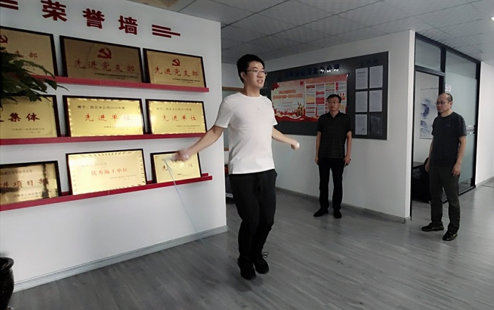 活動開始前,許洋先就此次活動開展的內(nèi)容及比賽規(guī)則進(jìn)行了宣布。比賽還未開始,選手們們個個摩拳擦掌、準(zhǔn)備一顯身手。隨著一聲哨響,比賽開始,選手們手中揮舞著跳繩,腳下飛快跳動著。手中的跳繩在空中劃出了優(yōu)美的弧線?!?70.171.172......加油”!活動現(xiàn)場氣氛熱烈,喝彩聲此起彼伏。選手們額頭上浸出的汗水與漲紅的臉上,最終決出了跳繩比賽的冠亞季軍。接下來,在分公司會議室又進(jìn)行了摜蛋比賽,大家圍成一桌,你一言我一語的開始了競賽活動。