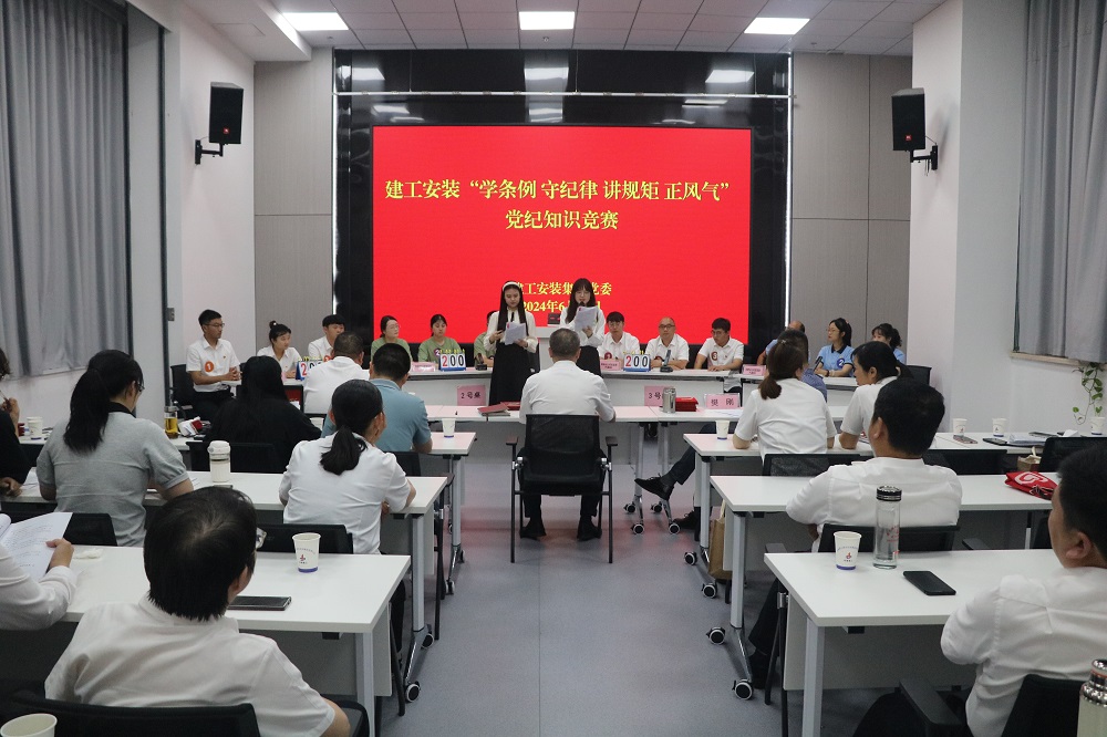 6月27日下午,建工安裝集團舉辦“學條例 守紀律 講規(guī)矩 正風氣”黨紀知識競賽。公司黨委委員、紀委書記李楊,黨委委員、副總經(jīng)理董雙武,黨委委員、副總經(jīng)理樊剛出席活動,各黨支部書記、機關(guān)部門負責人以及參賽選手等40余人參加活動。