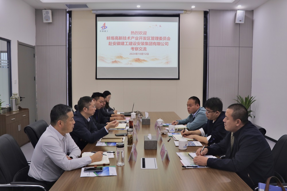 會上,朱珍宏重點(diǎn)介紹了安徽建工集團(tuán)三大戰(zhàn)略布局基本情況以及建工安裝集團(tuán)發(fā)展歷程、業(yè)務(wù)范圍、核心競爭優(yōu)勢等;方浩亮分享了蚌埠高新區(qū)和自貿(mào)區(qū)在電子信息、高端制造和新材料新能源等領(lǐng)域所取得的成就與獨(dú)特技術(shù)優(yōu)勢。雙方重點(diǎn)圍繞產(chǎn)業(yè)投資、園區(qū)建設(shè)、技術(shù)創(chuàng)新、光伏儲能方面充分交換意見,為下一步合作打下堅實(shí)的基礎(chǔ)。