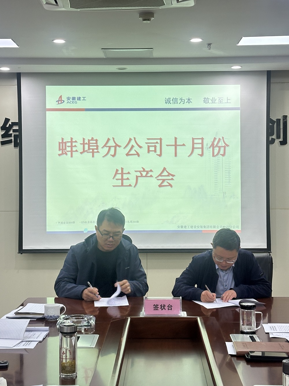 11月1日上午,蚌埠分公司組織召開10月份生產經營調度會,分公司領導班子成員、所屬各項目部、機關各部門負責人及工程管理部全體員工參加會議,會議由分公司副經理張斌主持。