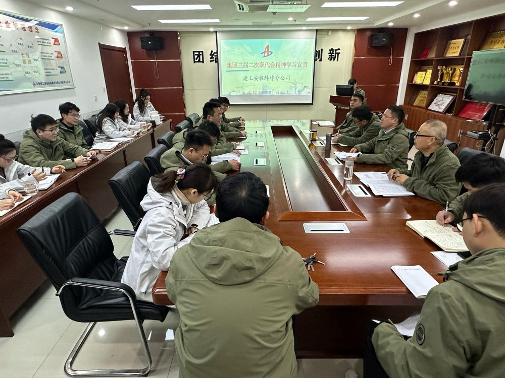 2月 13 日,建工安裝蚌埠分公司召開專題學(xué)習(xí)會(huì),全面深入學(xué)習(xí)宣貫安徽建工集團(tuán)三屆二次職代會(huì)會(huì)議精神。分公司班子成員、機(jī)關(guān)全體員工以及在蚌項(xiàng)目管理人員參會(huì)。會(huì)議由分公司黨支部書記、經(jīng)理趙銘亮主持。