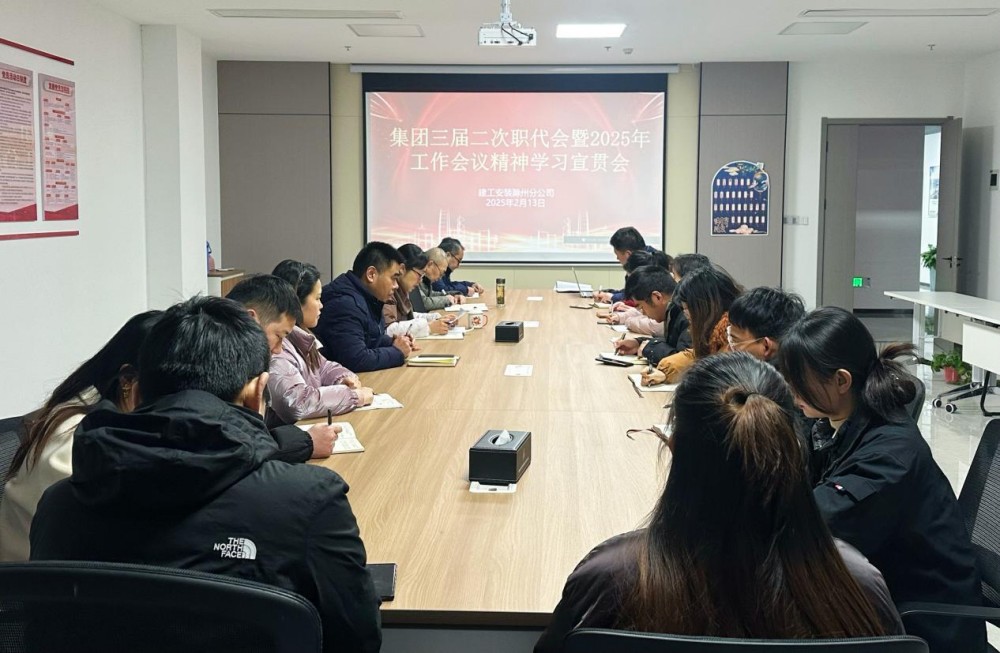 2月13日上午,建工安裝滁州分公司分別在機(jī)關(guān)和項(xiàng)目部組織召開專題會(huì)議傳達(dá)學(xué)習(xí)建工控股三屆二次職代會(huì)暨2025年工作會(huì)議精神,分公司領(lǐng)導(dǎo)班子成員、機(jī)關(guān)全體員工和新橋智能制造產(chǎn)業(yè)園項(xiàng)目員工參加會(huì)議。