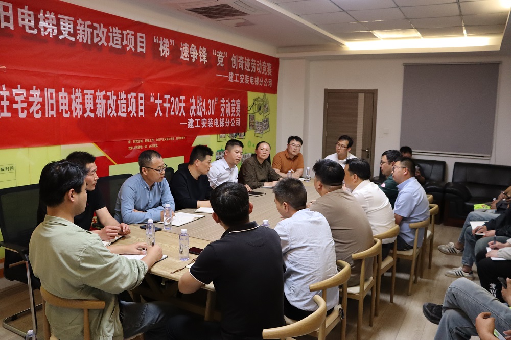 為推動勞動競賽工作的有力開展,進一步激發(fā)廣大參建員工立足崗位建新功的勞動激情,推動項目提質(zhì)增效,順利完成項目目標(biāo)任務(wù),4月10日下午,建工安裝電梯分公司蚌埠2024年住宅老舊電梯更新改造項目開展了以“大干20天,決戰(zhàn)4.30”為目標(biāo)的勞動競賽大討論活動。電梯分公司領(lǐng)導(dǎo)班子成員、項目部管理人員、參建單位及勞務(wù)班組代表參加會議。