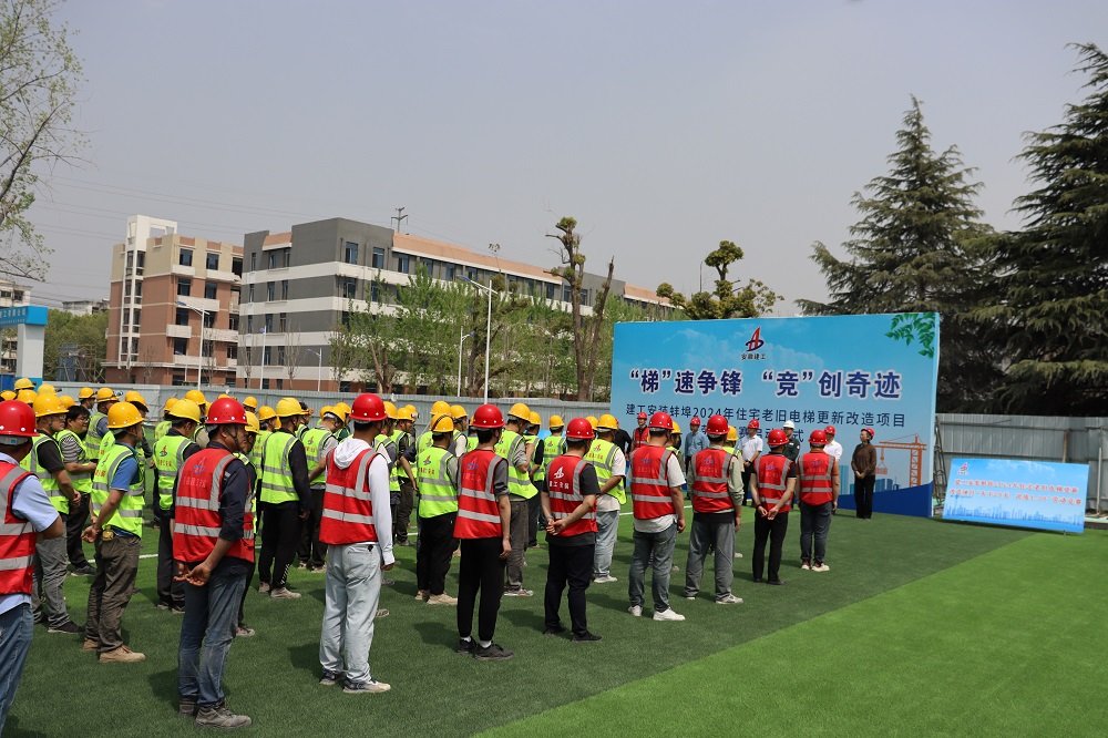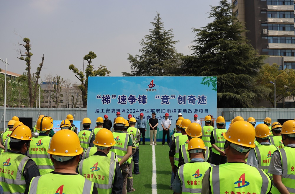 為貫徹集團(tuán)和公司兩級職代會精神,落實(shí)公司勞動競賽活動相關(guān)工作要求,加快工程建設(shè)進(jìn)度,不斷提高項(xiàng)目管理和建設(shè)水平,4月10日,建工安裝電梯分公司蚌埠2024年住宅老舊電梯更新改造項(xiàng)目舉行了以“梯”速爭鋒 “競”創(chuàng)奇跡為主題的勞動競賽啟動儀式,正式吹響了“大干20天,決戰(zhàn)4.30”勞動競賽的奮進(jìn)號角。蚌埠市城市投資控股有限公司代表、分公司班子成員、項(xiàng)目部管理人員、各參建單位代表及作業(yè)人員共130余人參加活動。
