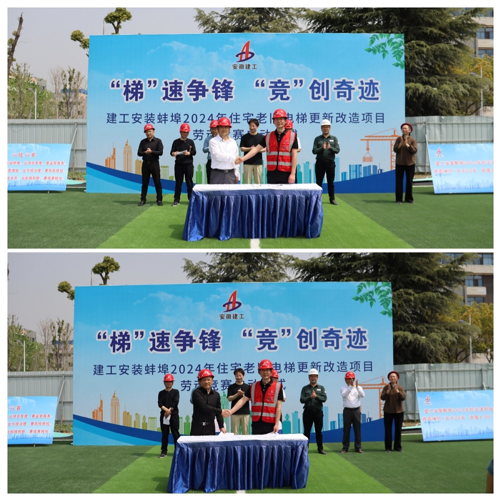夏國祥強(qiáng)調(diào),蚌埠2024年住宅老舊電梯更新改造項(xiàng)目作為蚌埠市重點(diǎn)民生工程意義重大、影響深遠(yuǎn)。開展此次勞動競賽活動,就是要通過以競創(chuàng)優(yōu)、以賽促效的形式進(jìn)一步加快施工進(jìn)度,提升施工質(zhì)量,為全力保障工程建設(shè)總目標(biāo)的順利實(shí)現(xiàn)打下堅(jiān)實(shí)基礎(chǔ)。以高質(zhì)量項(xiàng)目建設(shè)成績來進(jìn)一步提升建工安裝在城市住宅老舊小區(qū)電梯更新改造領(lǐng)域的品牌影響力和技術(shù)硬實(shí)力。