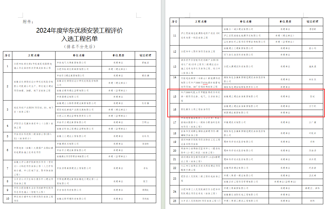 近日,2024年度華東優(yōu)質(zhì)安裝工程評(píng)價(jià)入選工程名單公布。建工安裝蚌埠分公司承建的輝隆年產(chǎn)2000噸氯蟲苯甲酰胺原藥及中間體一期項(xiàng)目設(shè)備、電氣、儀表安裝工程成功入選。