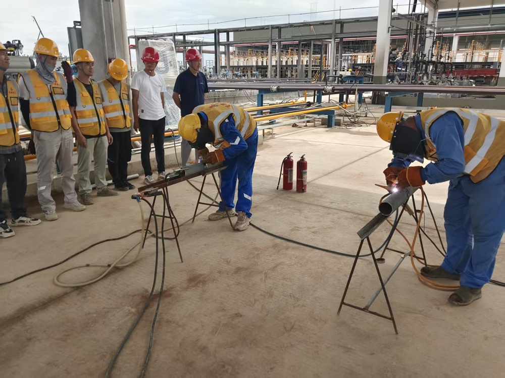 本次比賽共有6名焊工參賽。比賽分為理論考核和實際操作考核兩部分,理論考核涵蓋焊接基礎知識、安全規(guī)范等內(nèi)容;實際操作考核設置了管道焊接、板材對接焊兩個項目,重點考察選手的焊接操作技能、質(zhì)量控制能力和現(xiàn)場應變能力。比賽由項目技術(shù)負責人、安裝負責人擔任評委,確保了比賽的專業(yè)性和公正性。