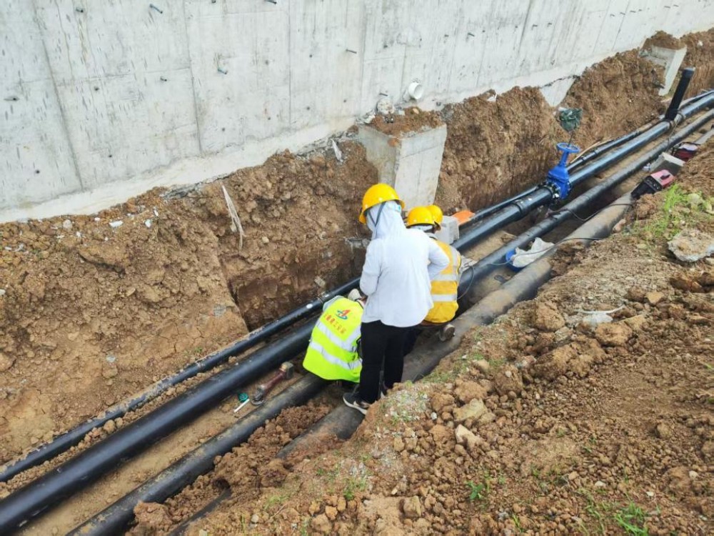 項(xiàng)目部主動作為,堅持“工程量優(yōu)先、工作面優(yōu)先”的原則,將合理優(yōu)化施工工序、科學(xué)安排作業(yè)面、加強(qiáng)資源調(diào)配、最大限度提升工效等作為搶抓工期的關(guān)鍵突破口。針對當(dāng)前高溫天氣和現(xiàn)場交叉作業(yè)等不利因素,項(xiàng)目部還及時優(yōu)化作業(yè)時段,實(shí)行“抓兩頭、歇中間”的錯峰施工方式。同時,加強(qiáng)勞動保護(hù)和安全巡查,現(xiàn)場配備充足的防暑藥品和飲品,強(qiáng)化項(xiàng)目人員的安全交底與健康監(jiān)護(hù),切實(shí)保障員工的安全與健康。